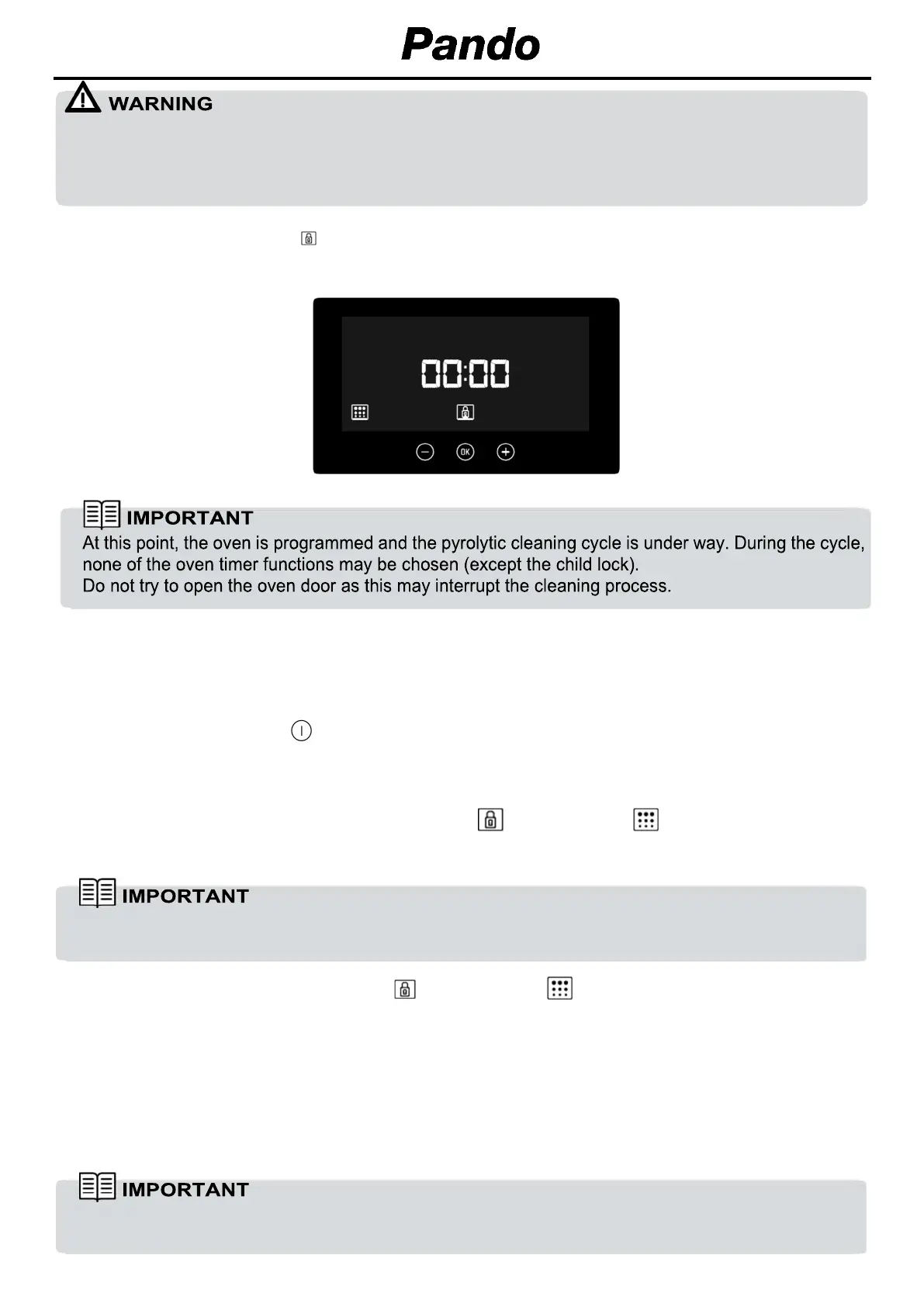 When the pyrolytic cleaning cycle has finished, an alarm will sound and you will see the time ‘0:00’