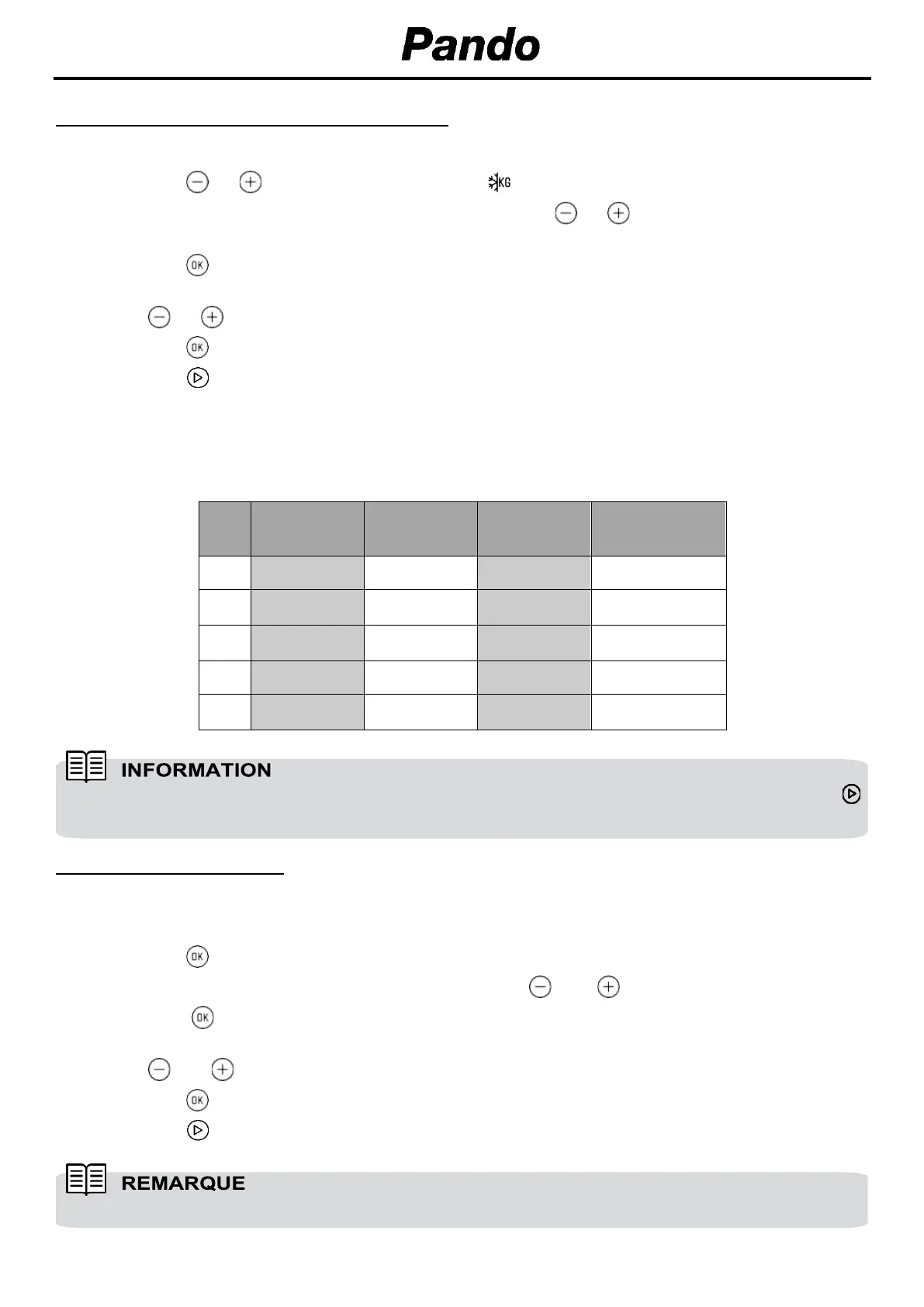 Le tableau suivant indique les programmes de décongélation par poids, avec intervalles de poids,