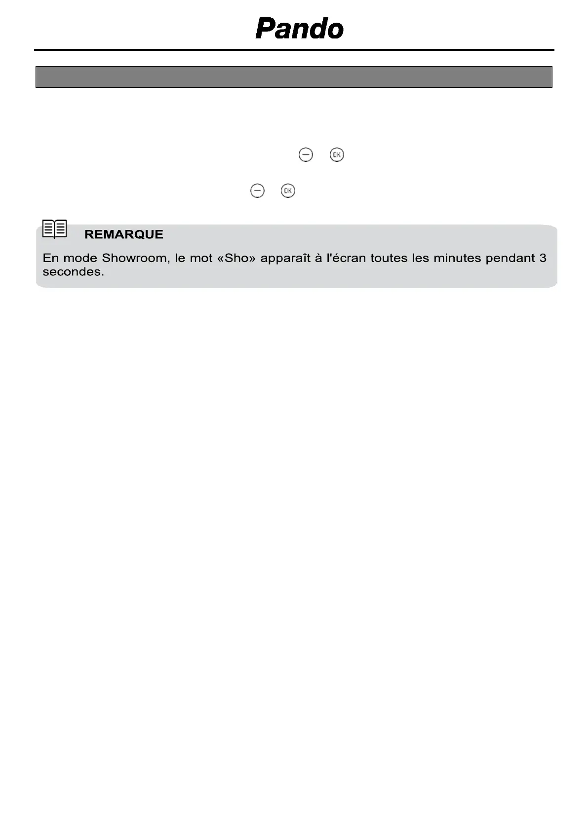 Pour activer le mode démonstration, appuyez sur et simultanément. Le mot «Sho» apparaît