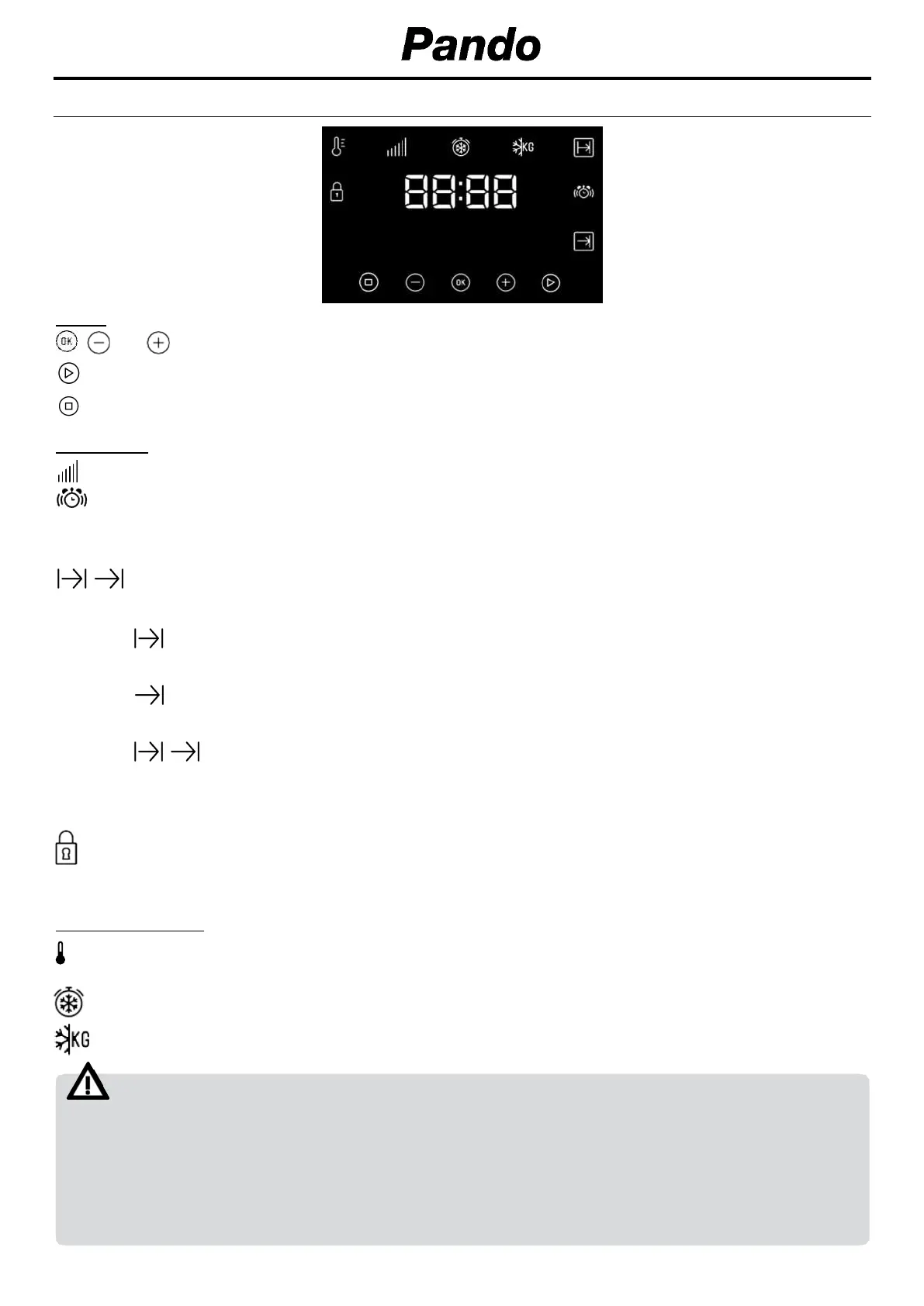 WARNING TIMER: Lights up when the clock/timer is selected. Generates an acoustic signal
