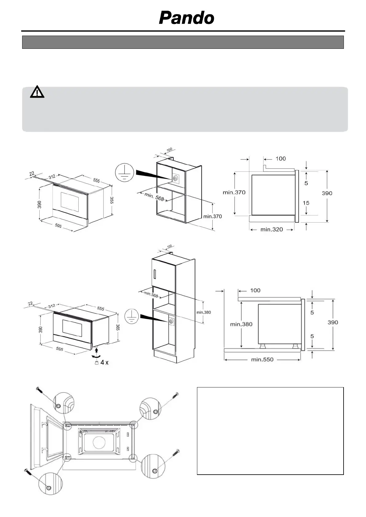 be installed under a worktop or below another oven, in order to avoid liquid spillage.