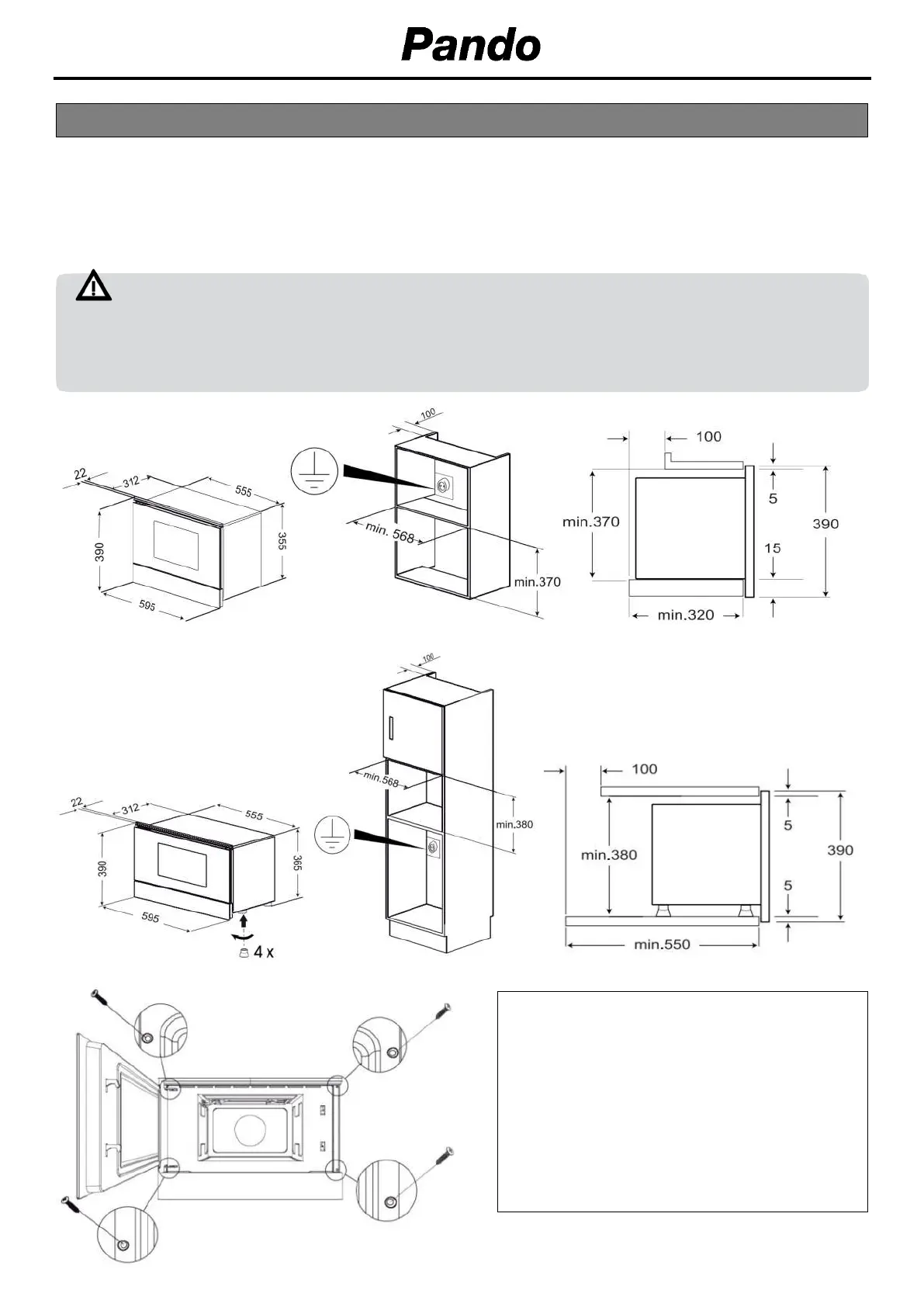 Respetar los huecos de ventilación en el mueble, ver dibujos instalación.