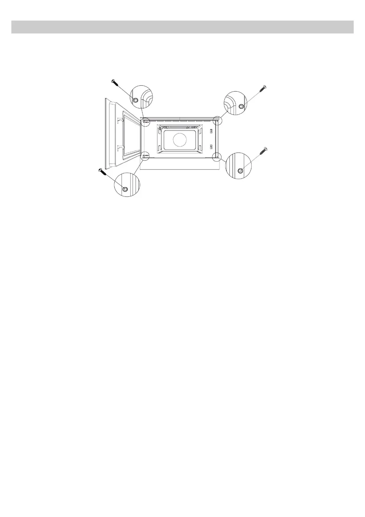 Die Tür der Mikrowelle öffnen und das Gerät mit den vier mitgelieferten