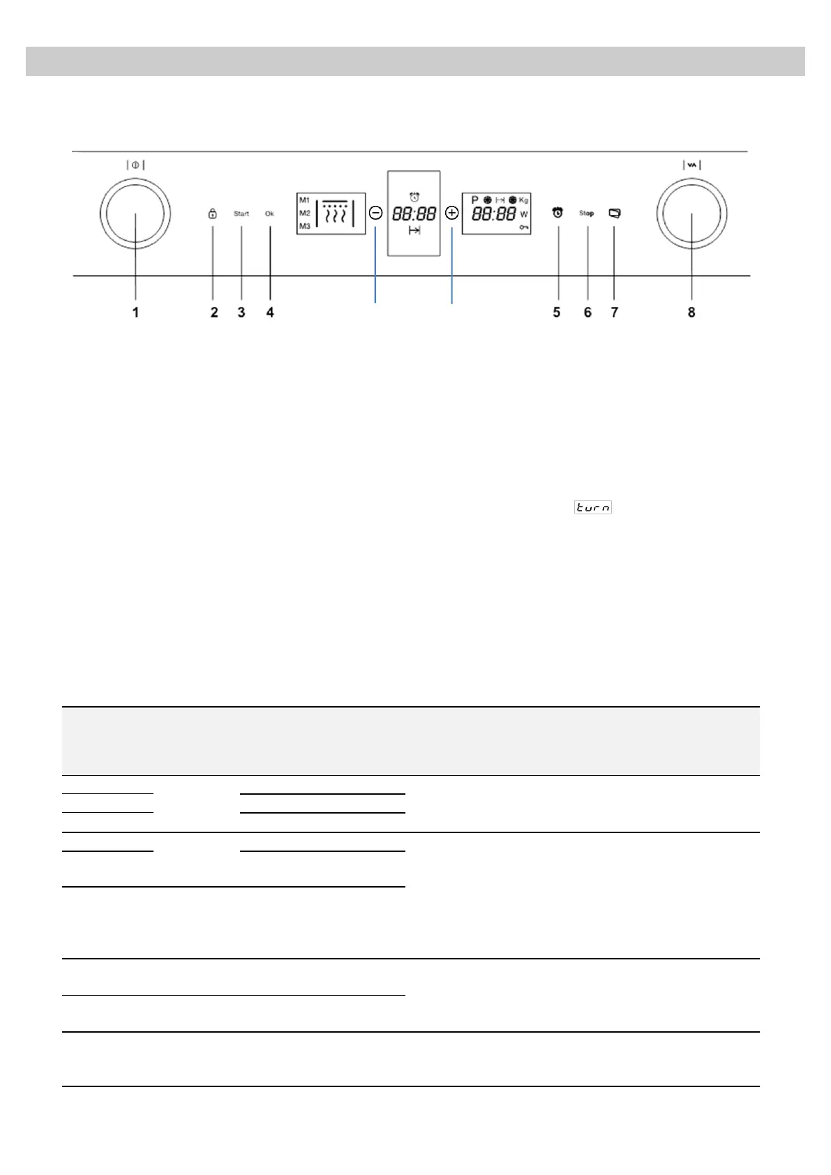 The following table shows the Special Function program, indicating weight intervals, and cooking and