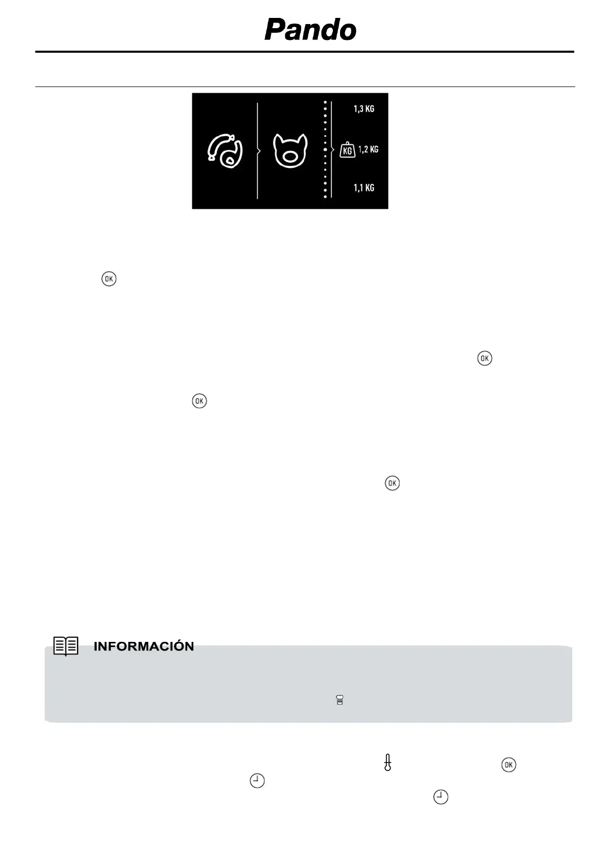 Según la receta seleccionada, el horno le pedirá que introduzca: