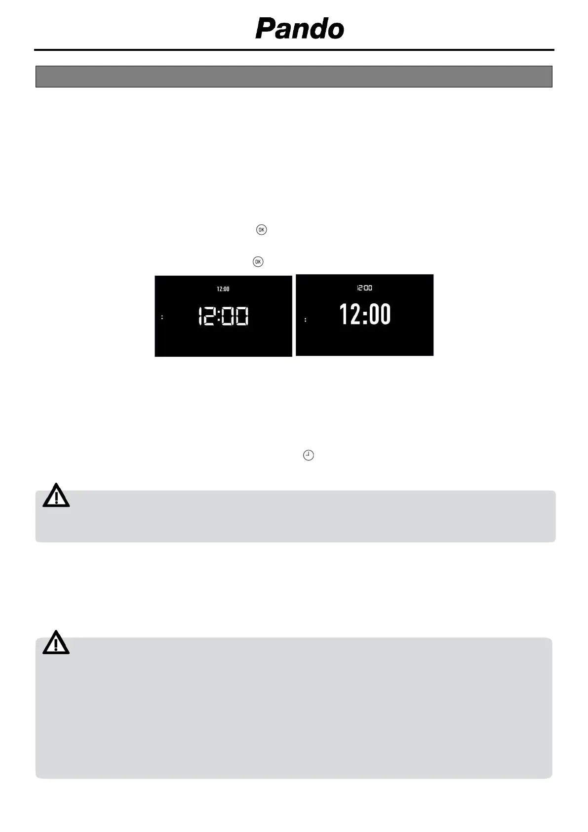 An audible signal will be heard confirming that the time has been set on the screen.