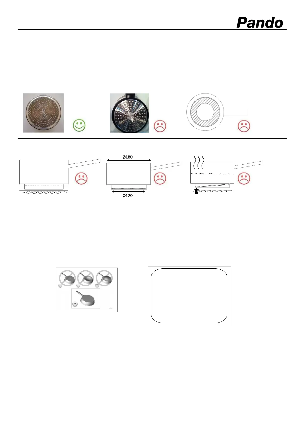 Materiales no adecuados: aluminio e inoxidable con fondo no ferro-magnético, cobre, latón,