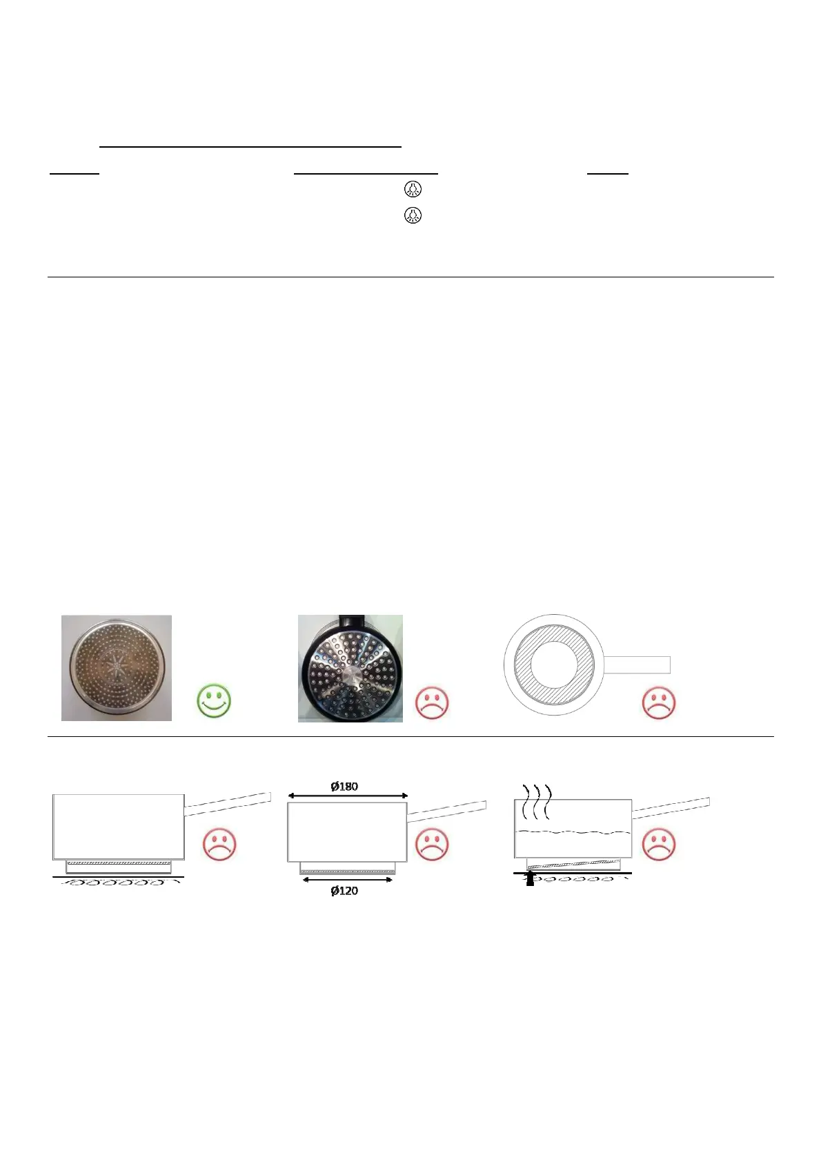 Materiais não adaptados: alumínio e aço inoxidável sem fundo ferromagnético, cobre, latão,