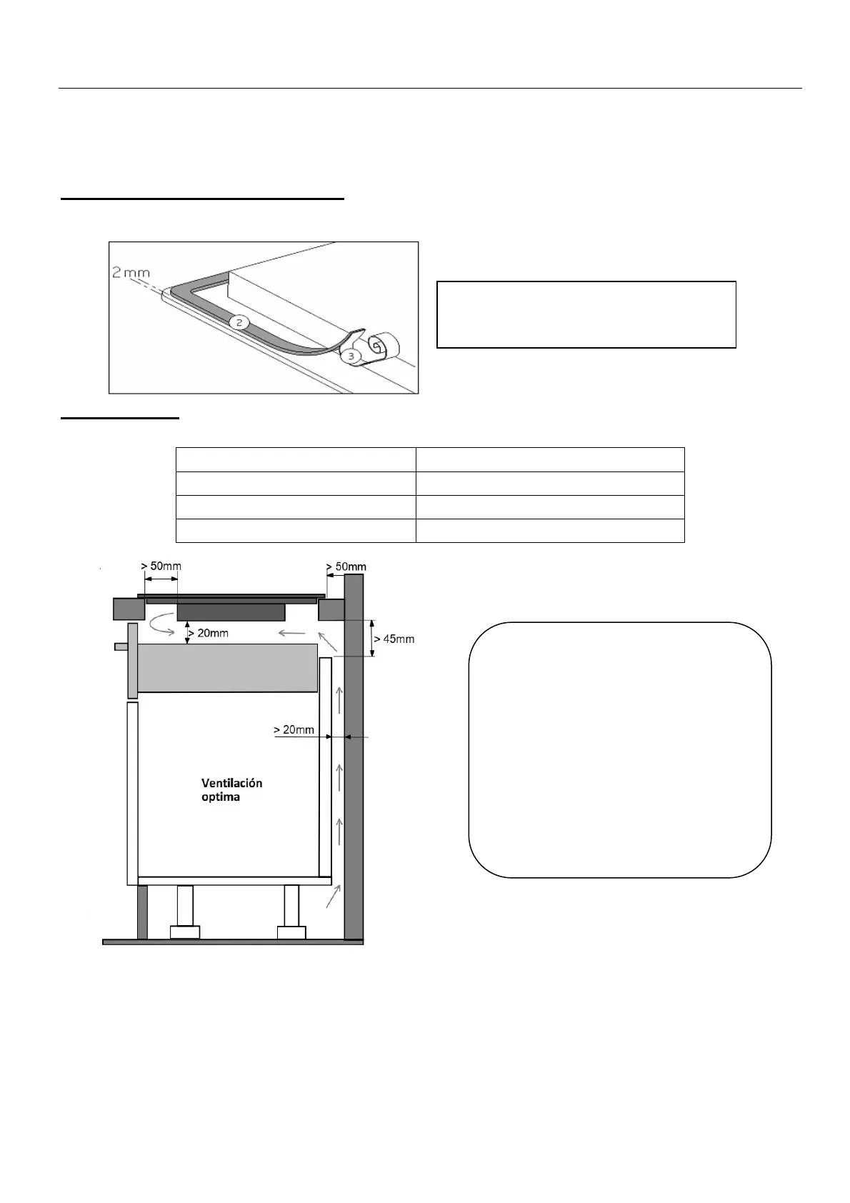 doit être de 20mm. Si le four n’est pas à ventilation forcée la