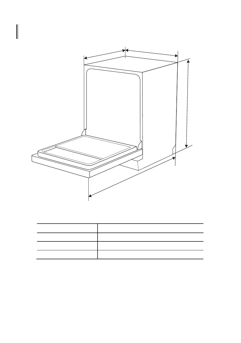 1150 mm (avec la porte ouverte à 90 °)