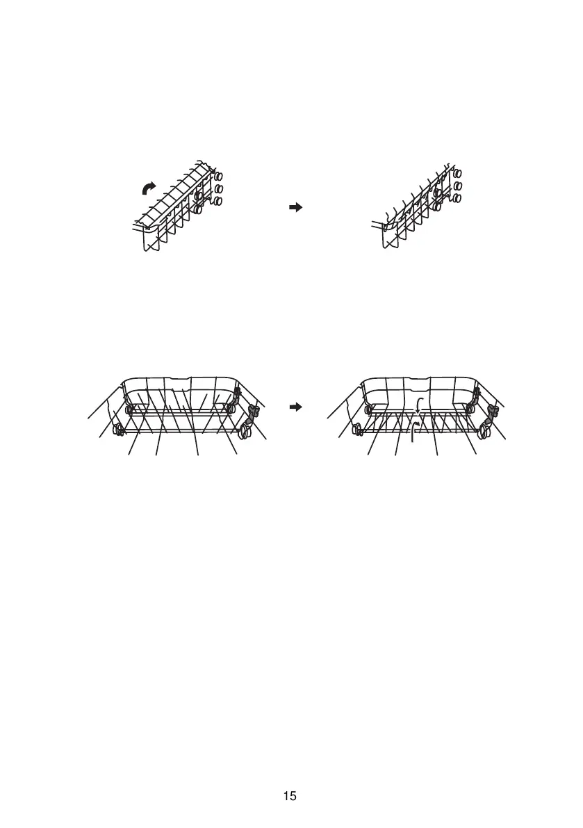 To make room for taller items in the upper basket, raise the cup rack upwards.