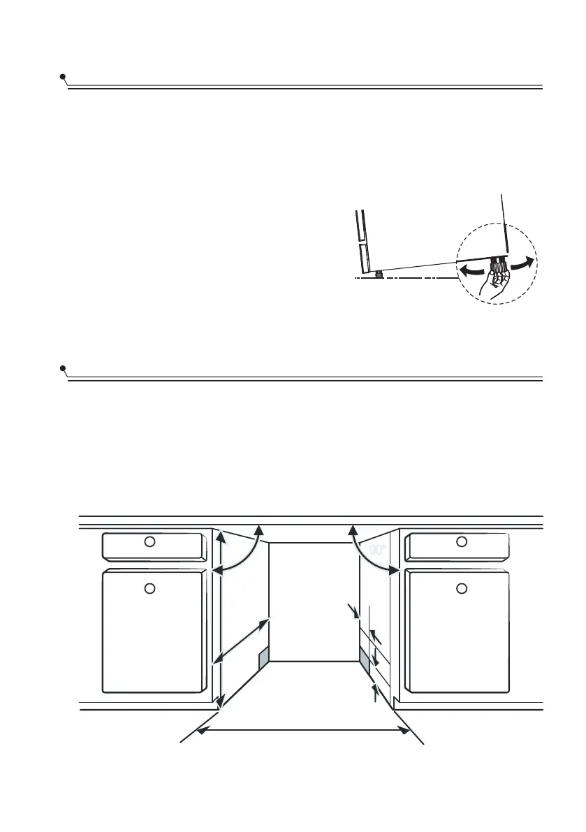 1. Less than 5 mm between the top of dishwasher and cabinet and the outer door
