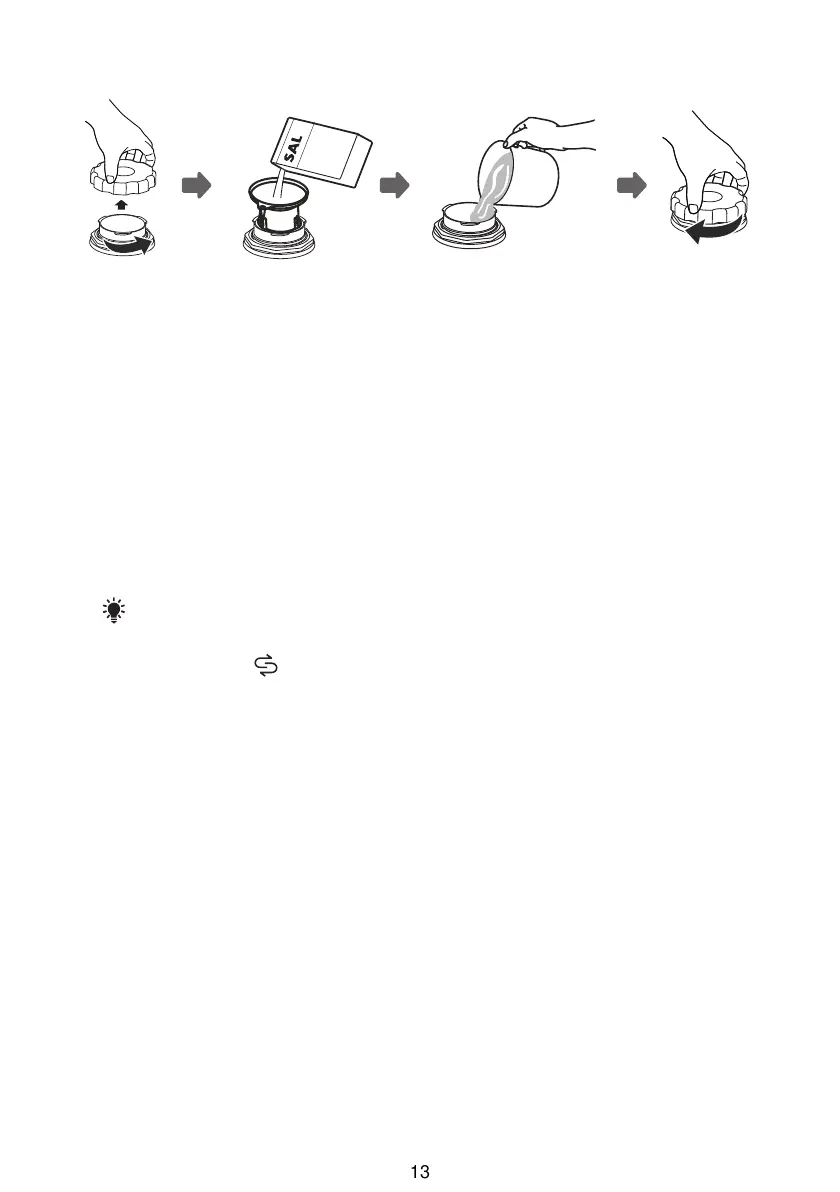 6. Immédiatement après avoir rempli le réservoir de sel, il faut lancer un