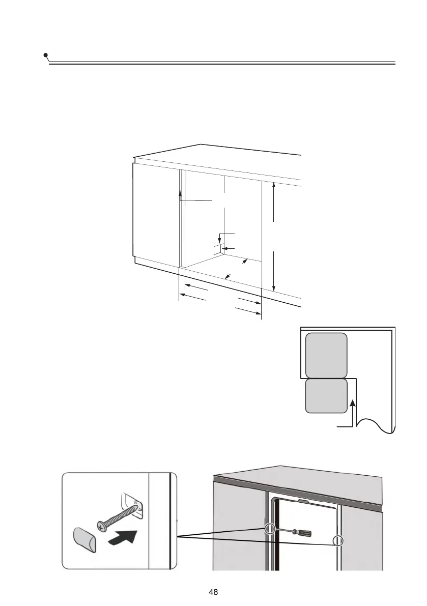 1. Less than 5 mm between the top of dishwasher and cabinet and the outer door