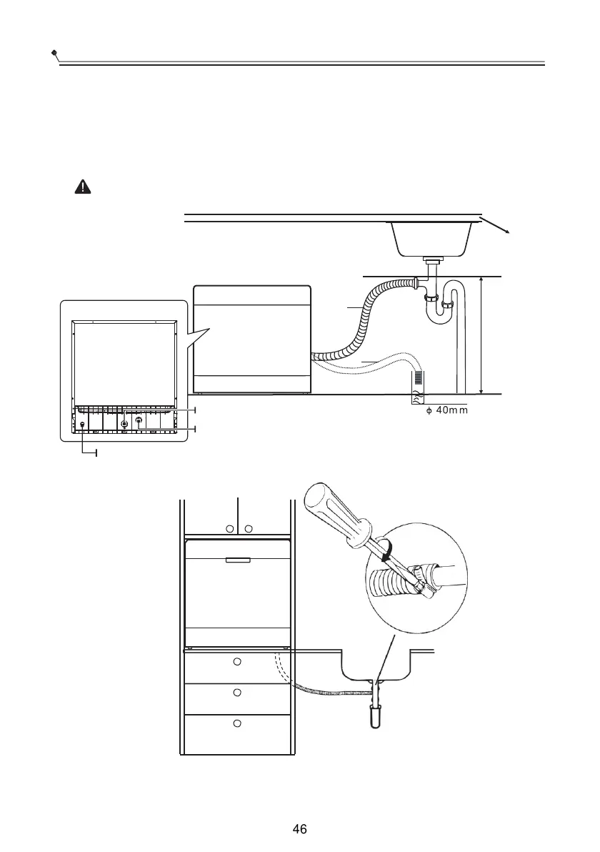 inferior a 750 mm. A extremidade livre do tubo não deve ficar submersa em