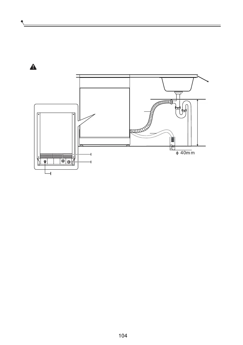 relação à parte inferior da máquina de lavar loiça. O tubo de drenagem de água