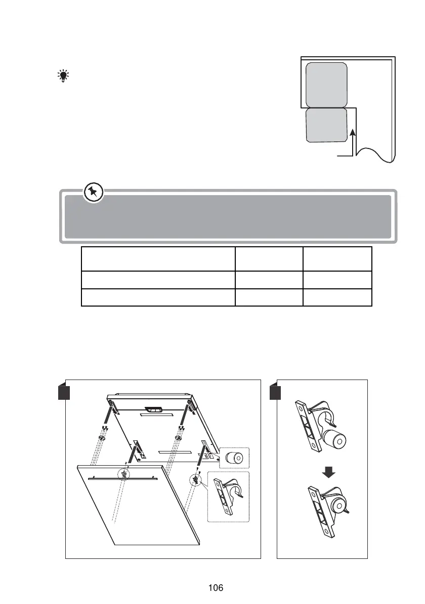 Instale os ganchos na porta decorativa e introduza-os (consulte a figura A) nas ranhuras