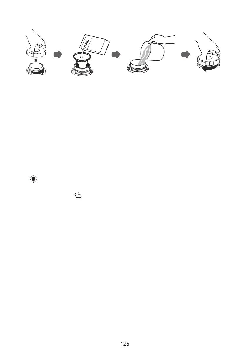 6. Immédiatement après avoir rempli le réservoir de sel, il faut lancer un