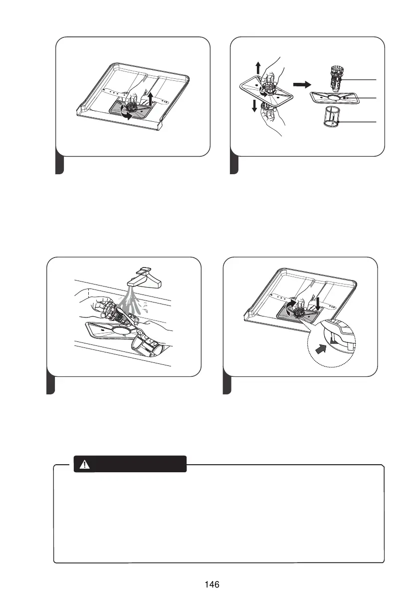 • N’utilisez jamais le lave-vaisselle sans les filtres en place. Un filtre placé