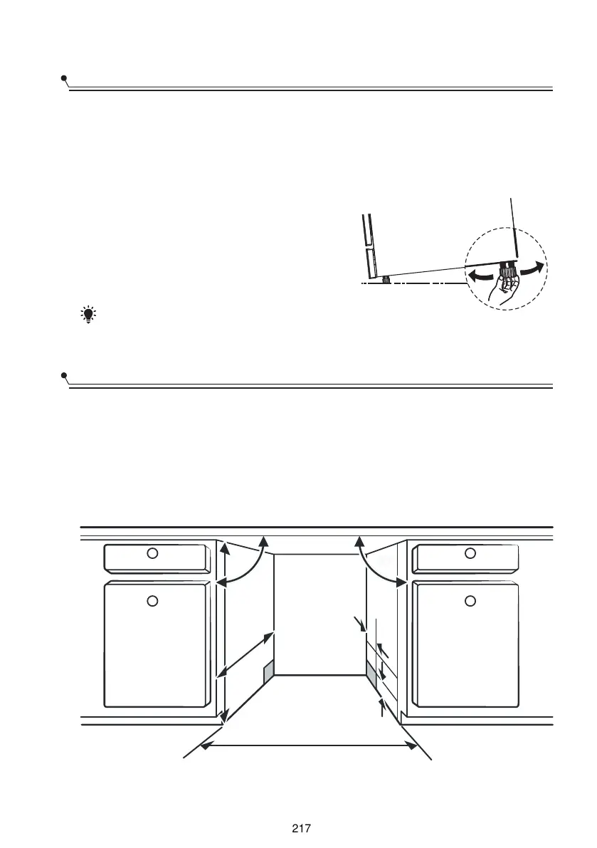 1. Less than 5 mm between the top of dishwasher and cabinet and the outer door