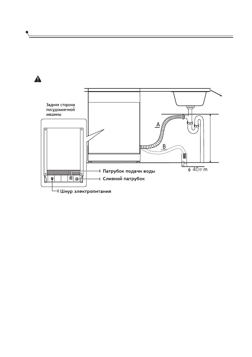 см от дна посудомоечной машины. Сливной шланг следует закрепить.