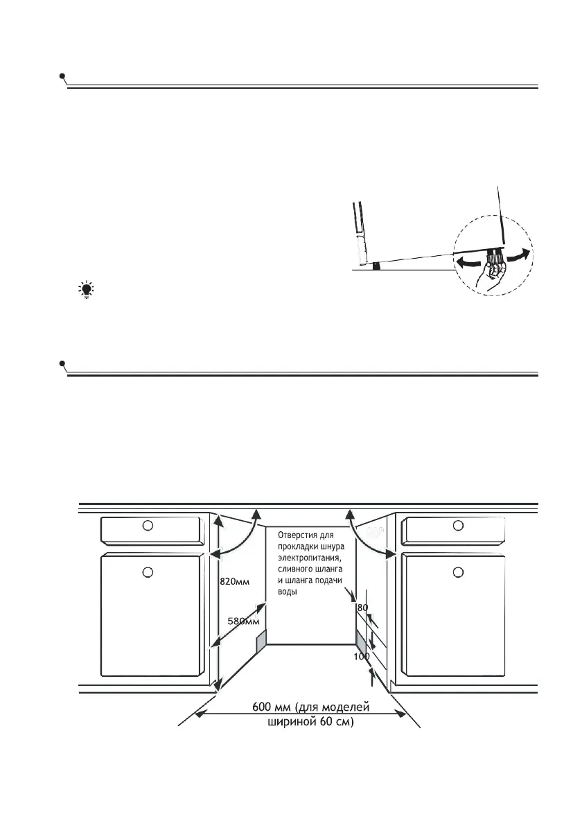 шкафам или стенам. Посудомоечная машина оснащена шлангами для подачи