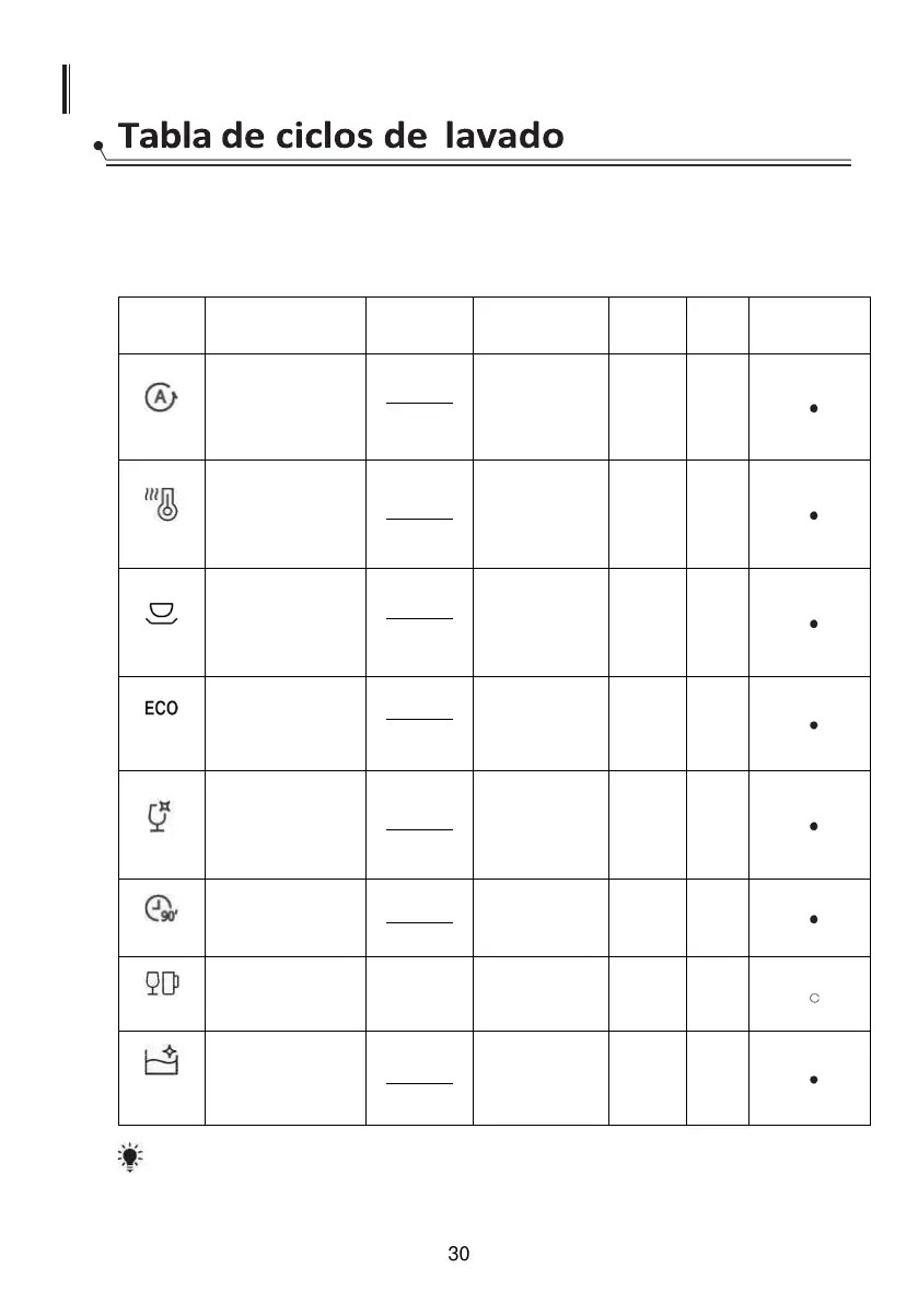 de alimentos y cuánto detergente es necesario. También se muestra información variada