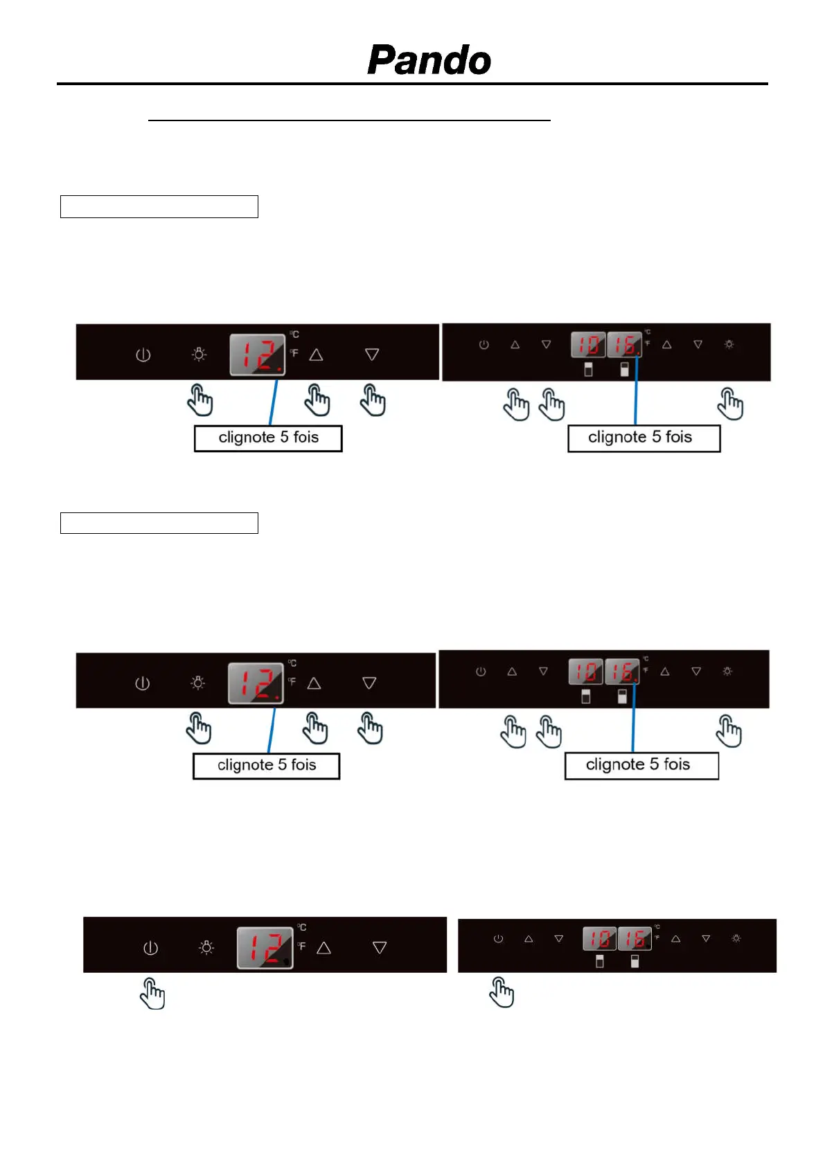 modèles à double zone) et la touche LUMIÈRE en même temps pendant au moins 5 secondes.