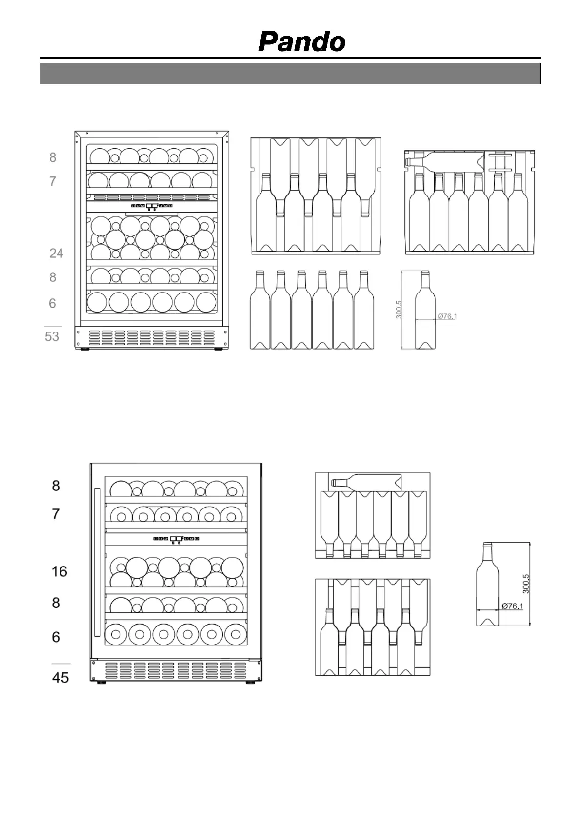 Pando PVMAV 45-18 - PVMB 60-53 Bottle Layout; PVMBP 60-45;PVMBP-HD 60-45 Bottle Layout