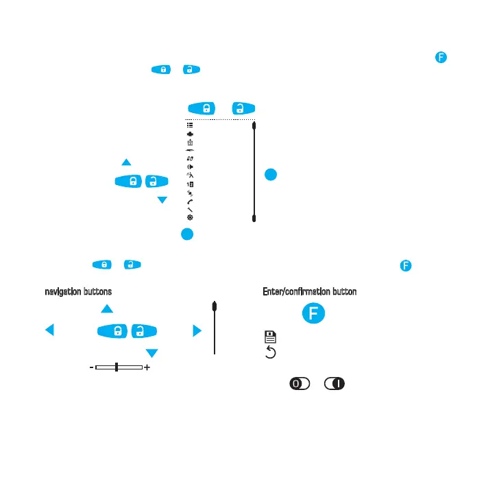or buttons to select a sub-menu. To enter a sub-menu, briefly press button.