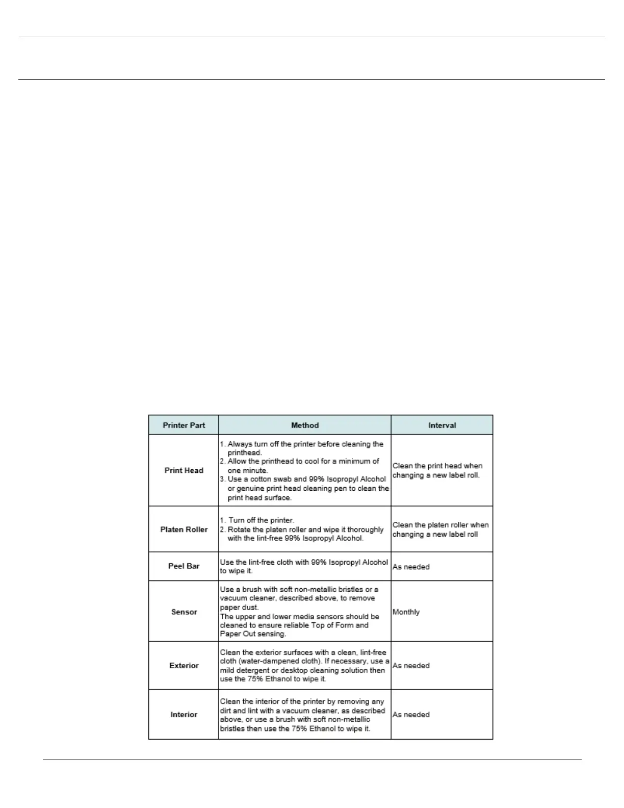 - 99% Isopropyl alcohol (for printhead and platen roller cleaning)