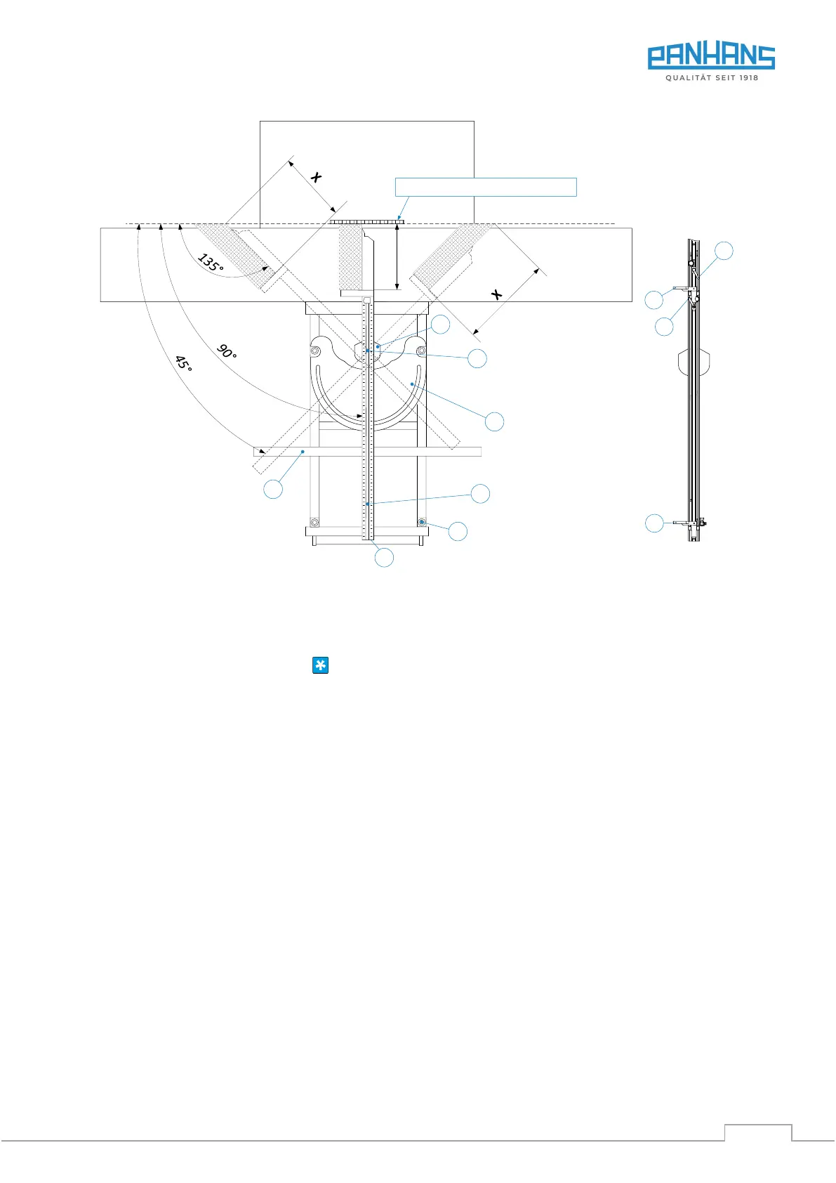 • Via the fixing points (F) on the left or right of the cross slide. To do this, simply release clamping lever (1)