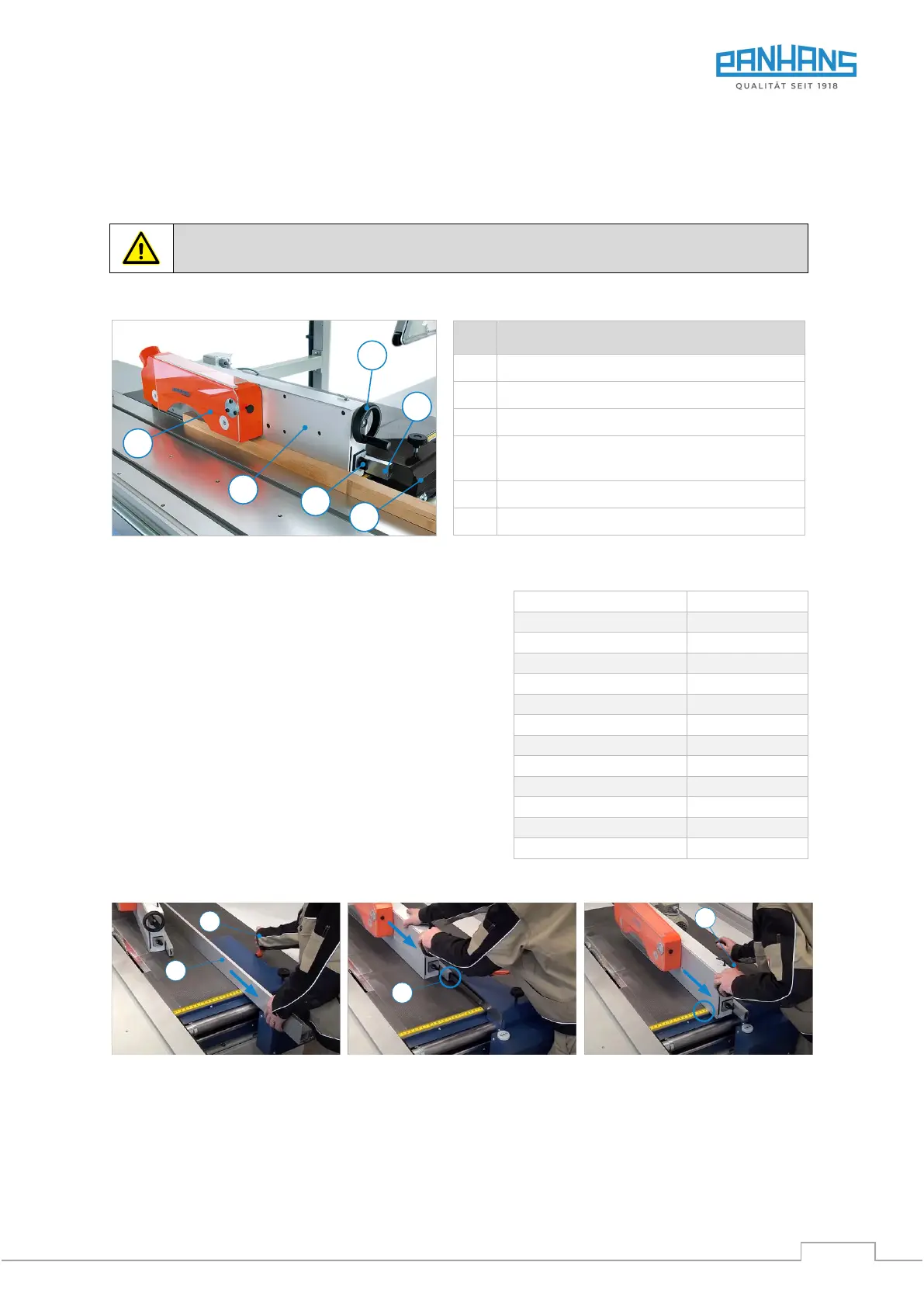 4. The cutting width (min. 25 mm) is set manually via the millimetre scale on the table.