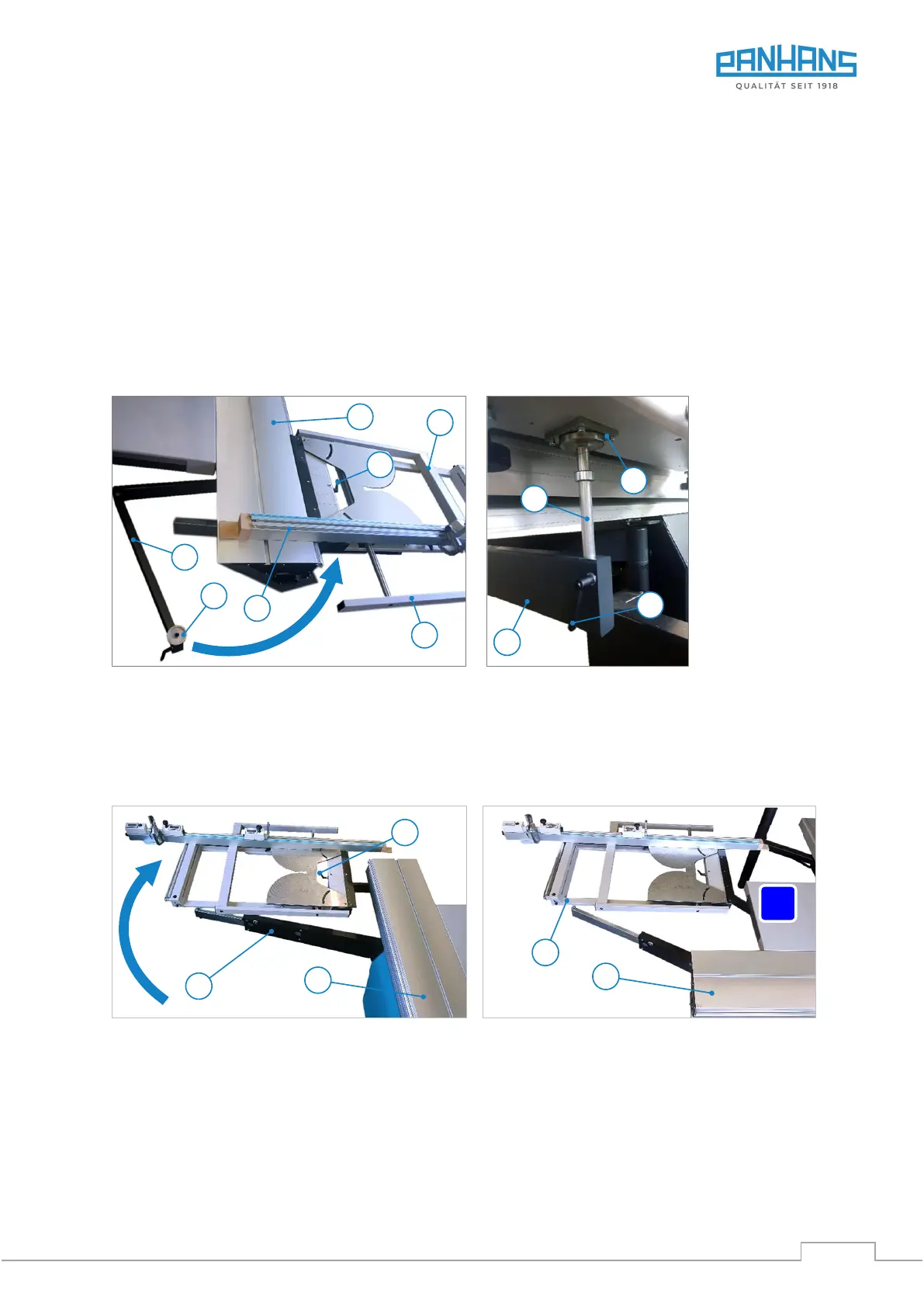 • Loosen the clamping lever (H) and pull the cross slide (Q) forwards → The cross slide is now only supported