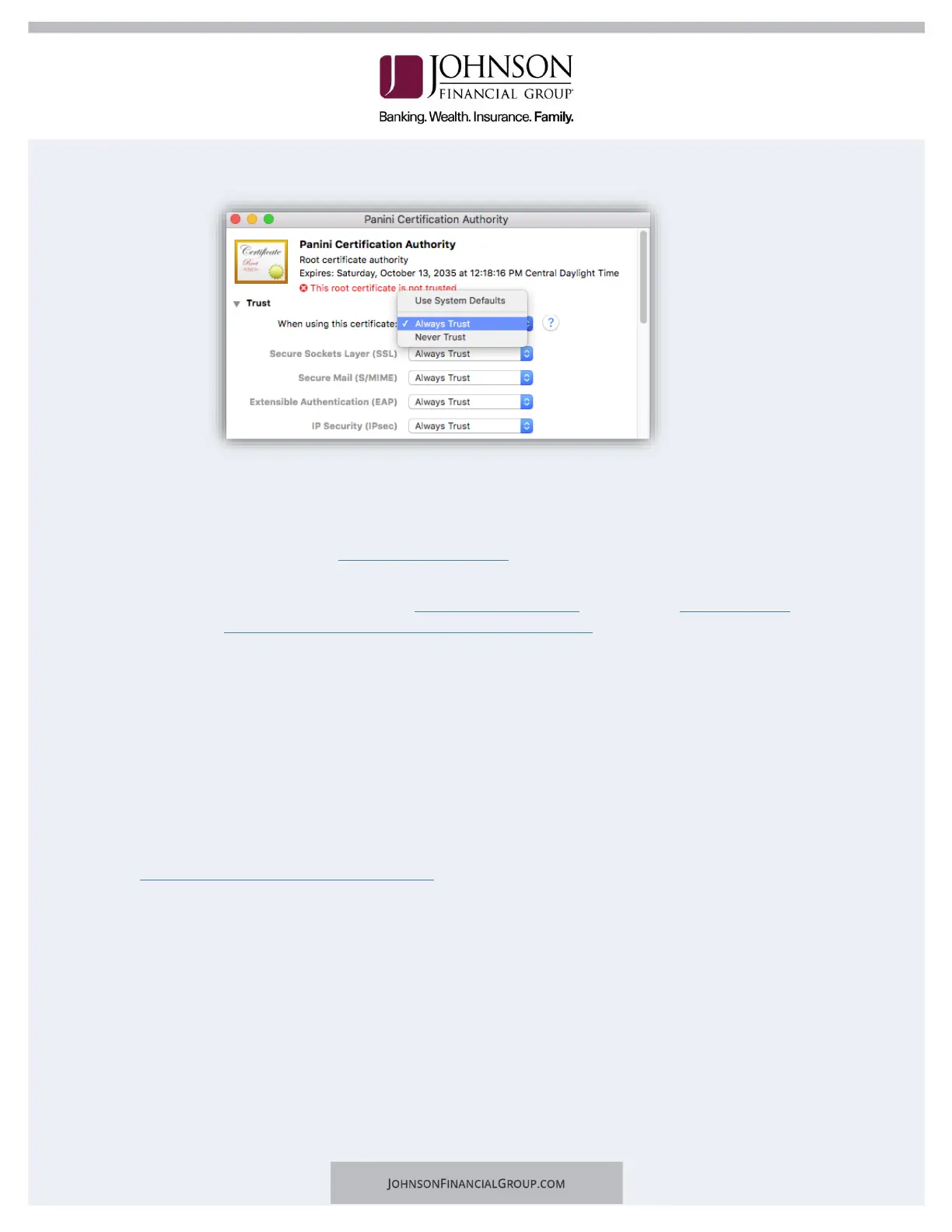 e. Expand Trust, then in the first dropdown, choose Always Trust.