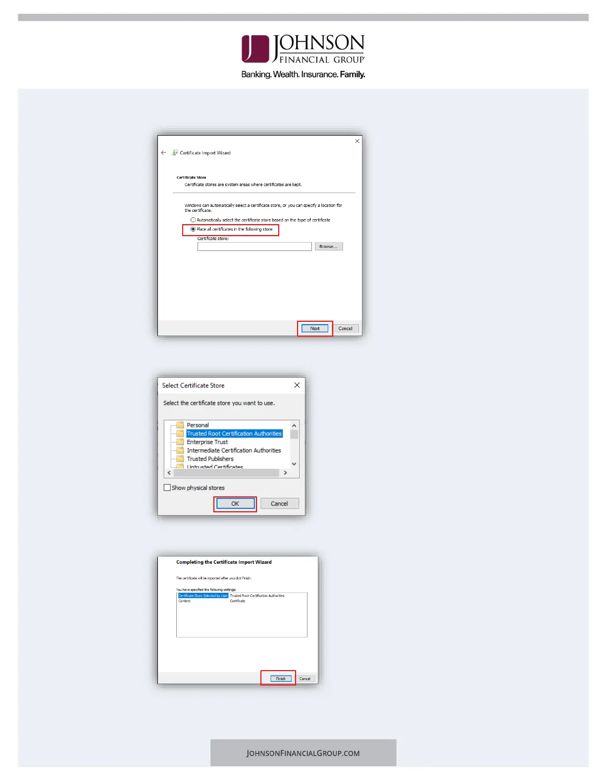f. Select Trusted Root Certification Authorities and click OK.