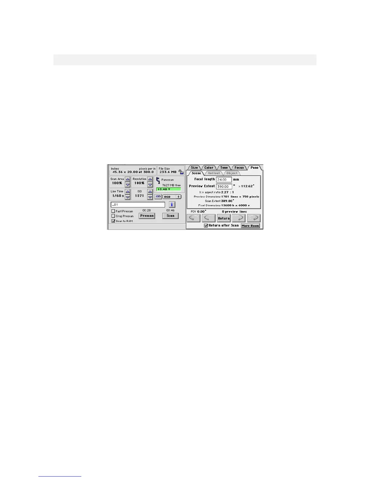 width. This sets the default scan width. We suggest always scanning at least 390 degrees if you