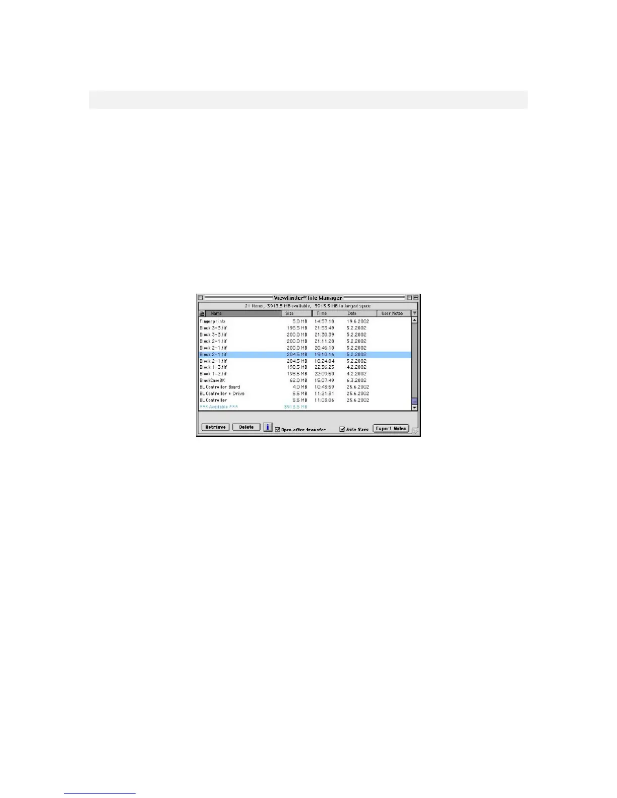 each file’s name. Selected files are highlighted and can then be either retrieved to the computer or