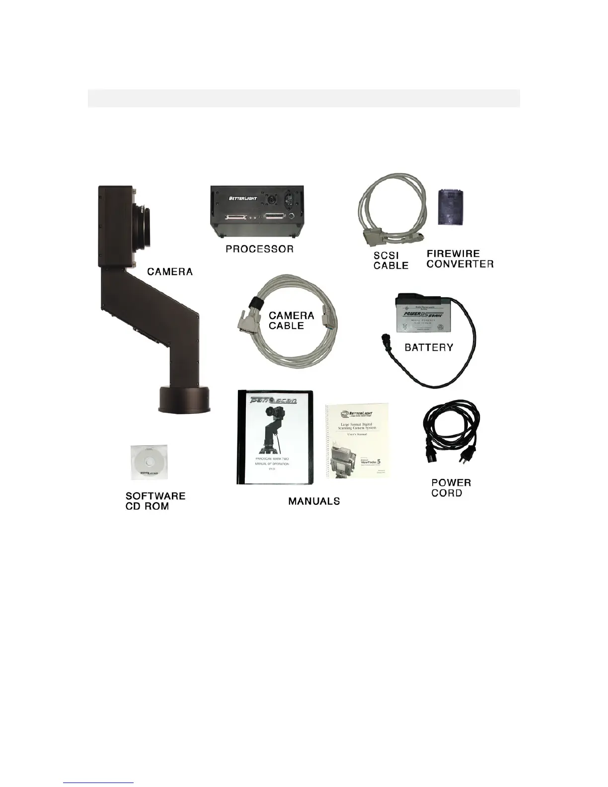 Your Panoscan MK2 camera system comes with the following parts. The standard configuration