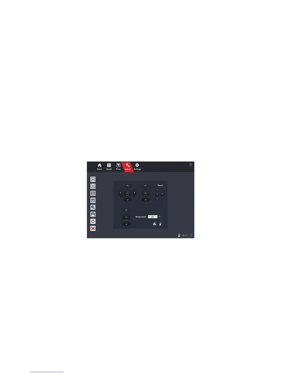 Go to the “Adjust” page and click the “Adjust printer” button.