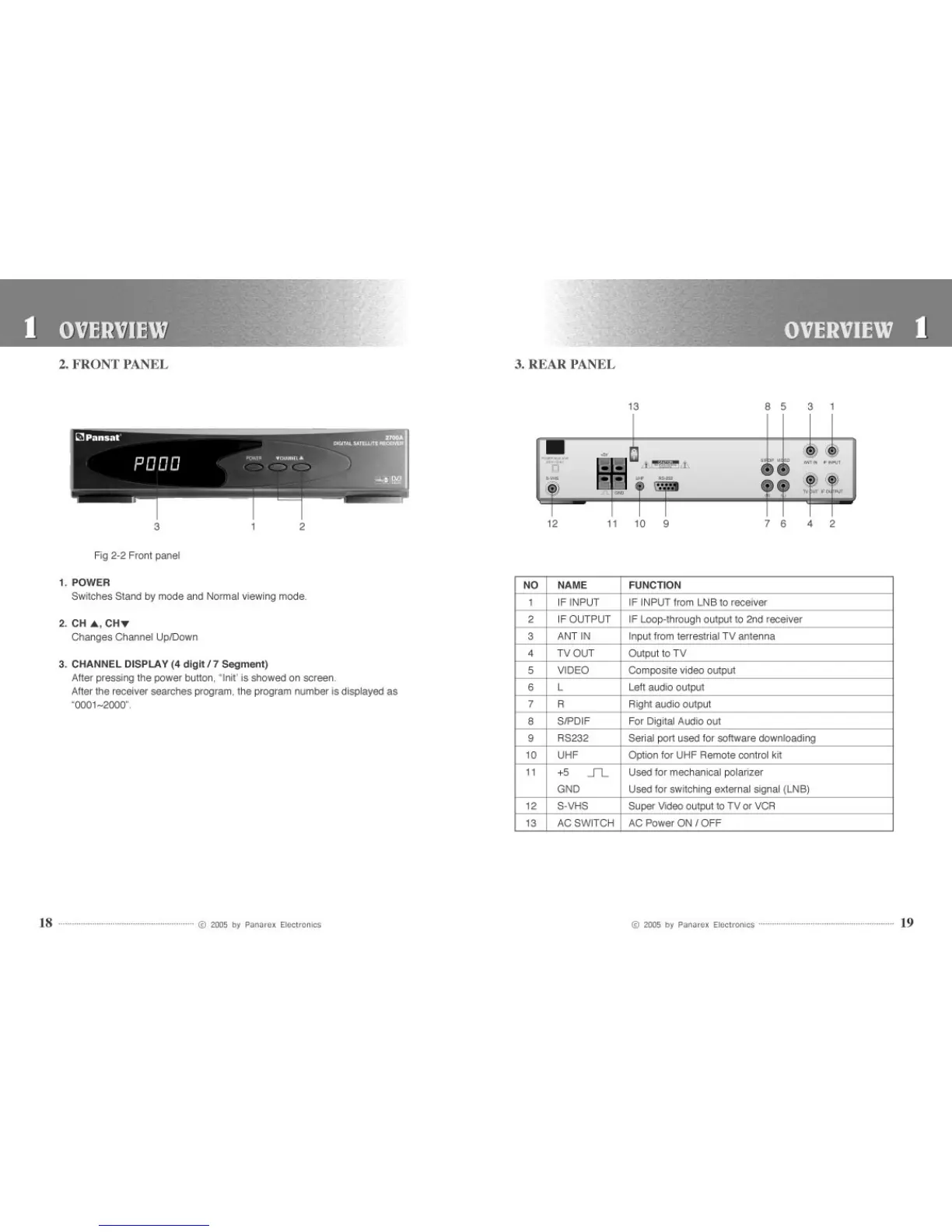 Pansat 2700A - Front Panel; Rear Panel