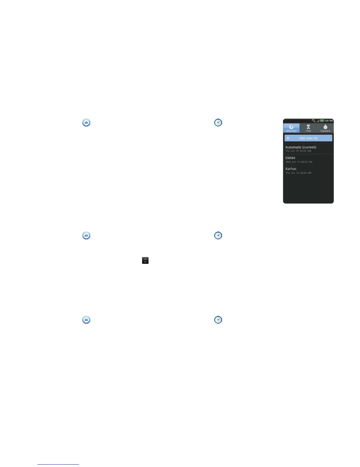 x If you want to delete all cities at once, press the Menu Key B and touch Delete, press the Menu