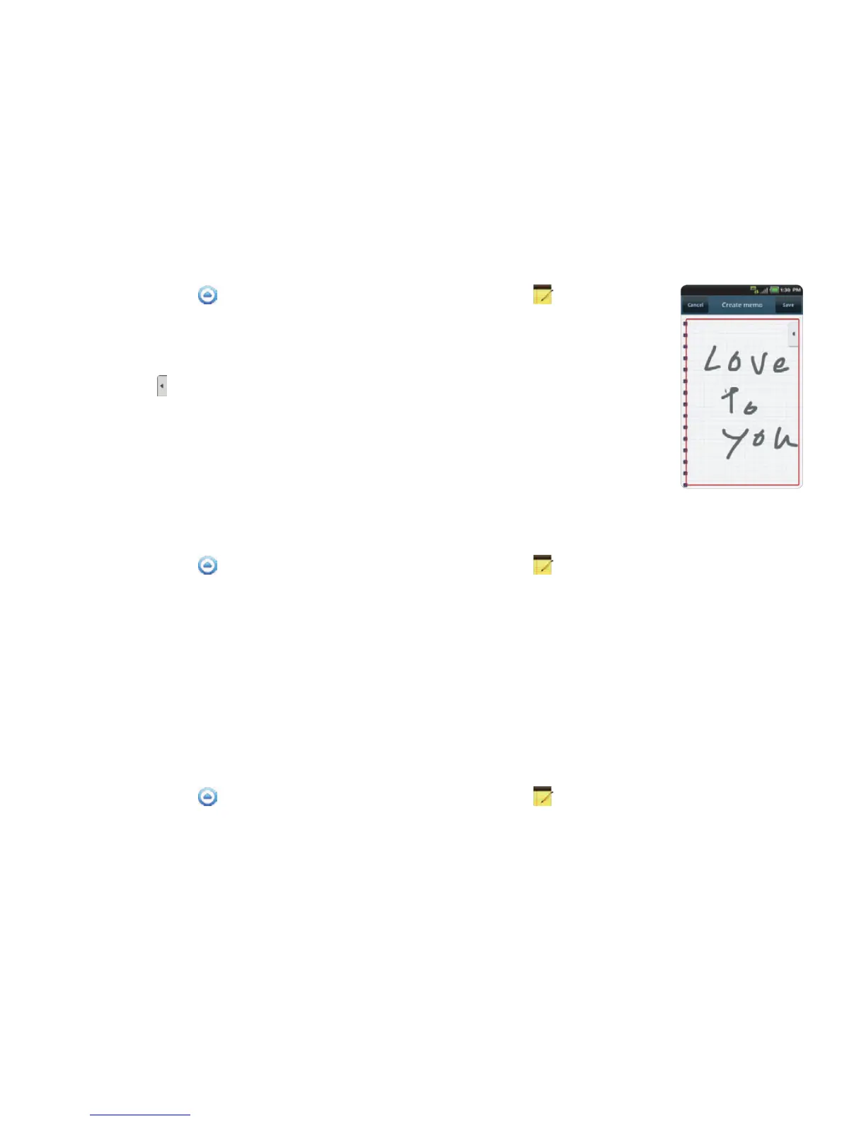 x If you want to check the memo before sending it to your friends, touch the title, press the Menu