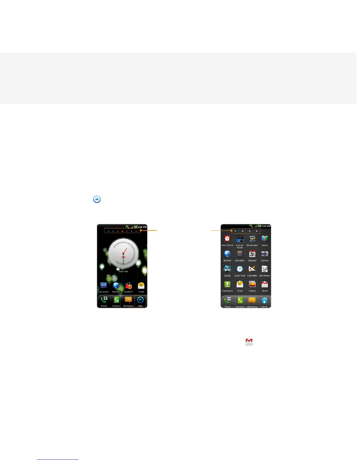 Gmail” significa que usted debe tocar en Gmail abajo del ícono Gmail
