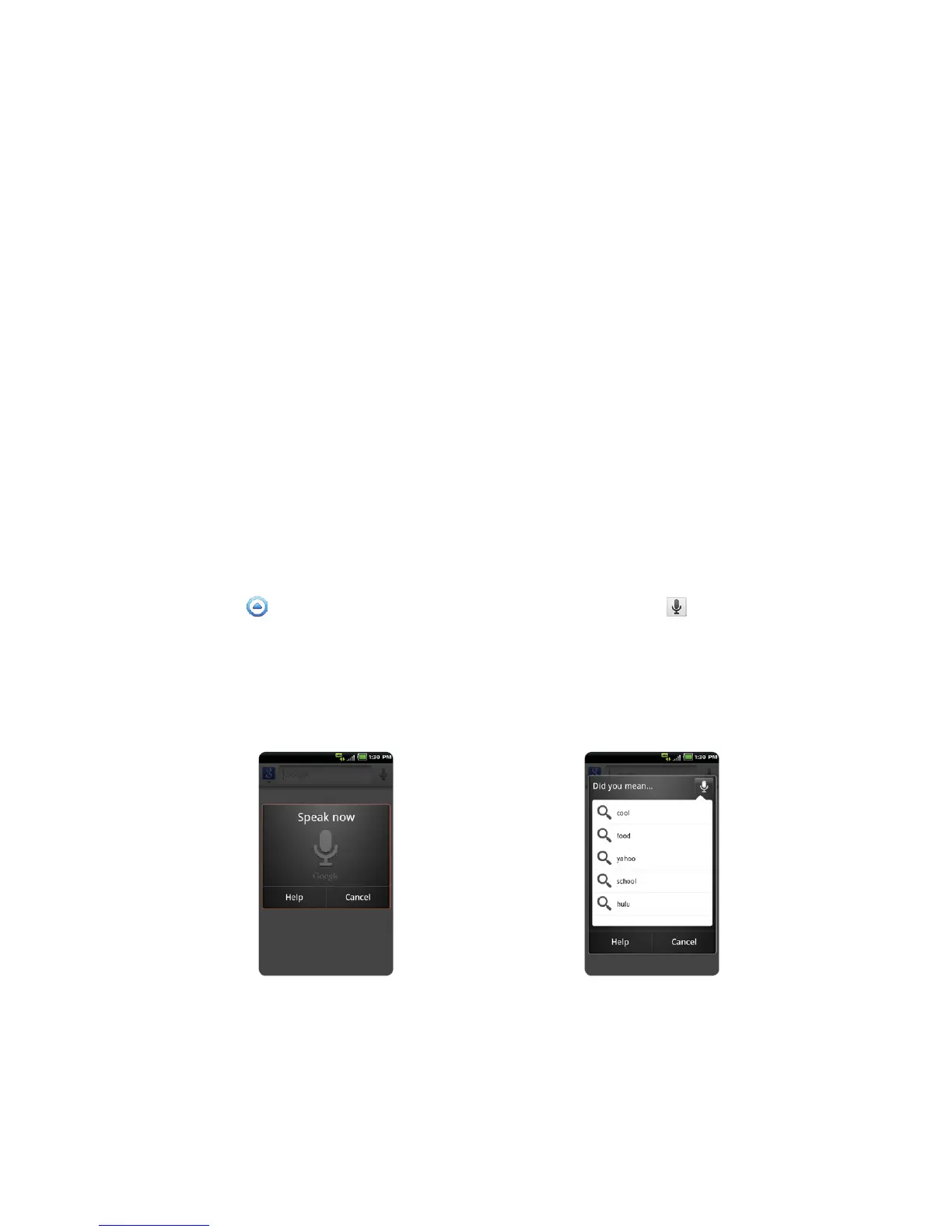 1 Toque en Menú en la Pantalla de Inicio. Toque en Búsqueda por voz o toque y mantenga