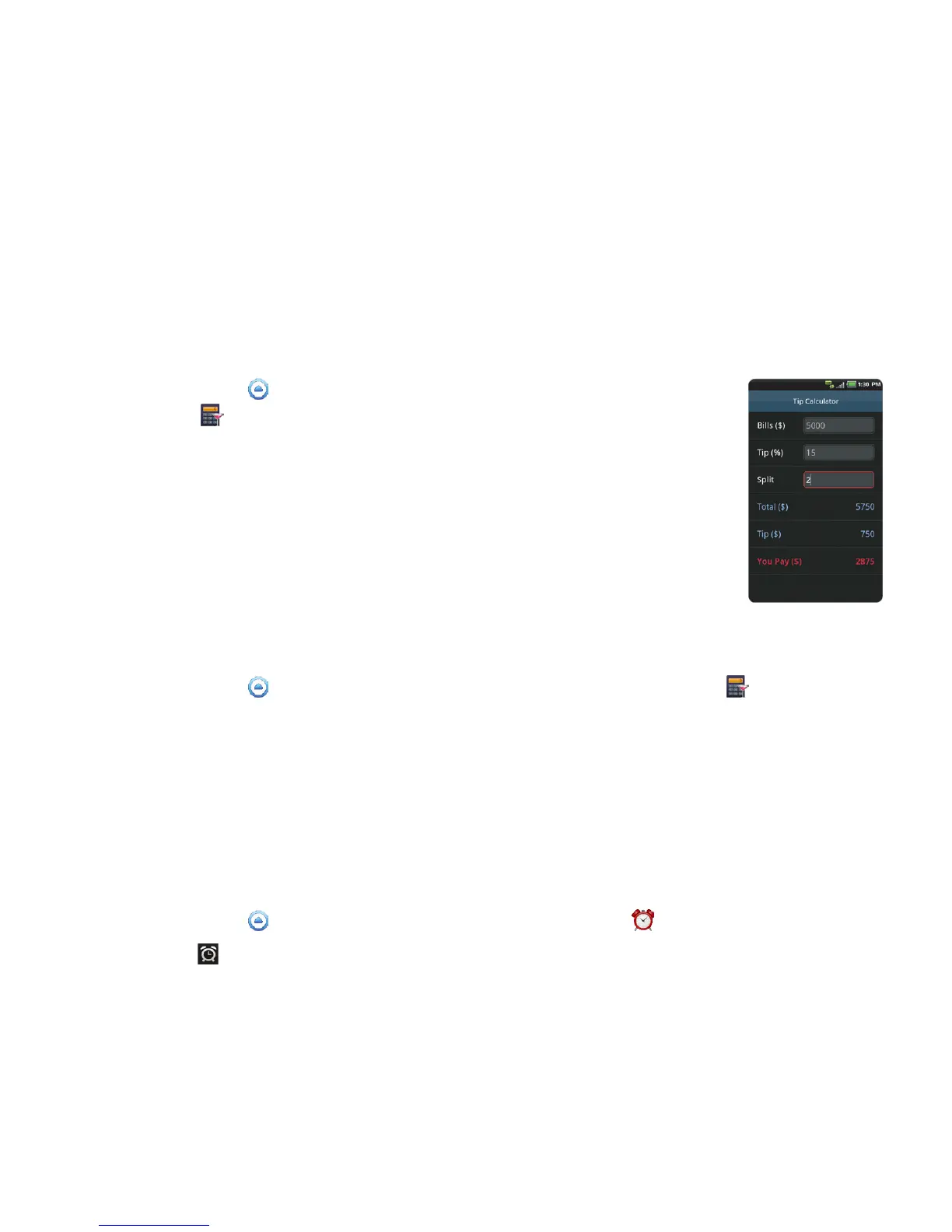 1 Toque en Menú en la Pantalla de Inicio. Toque en Calculadora de propina... .