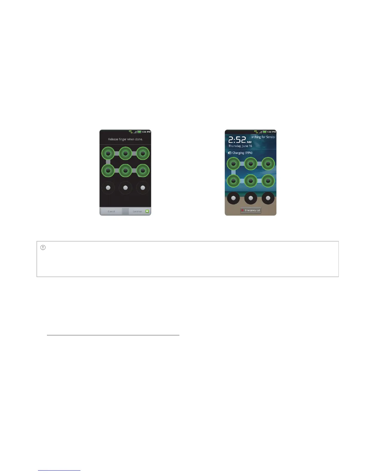 Nota Si usted no arrastra el patrón correcto para desbloquear la pantalla por cinco veces consecutivas, deberá