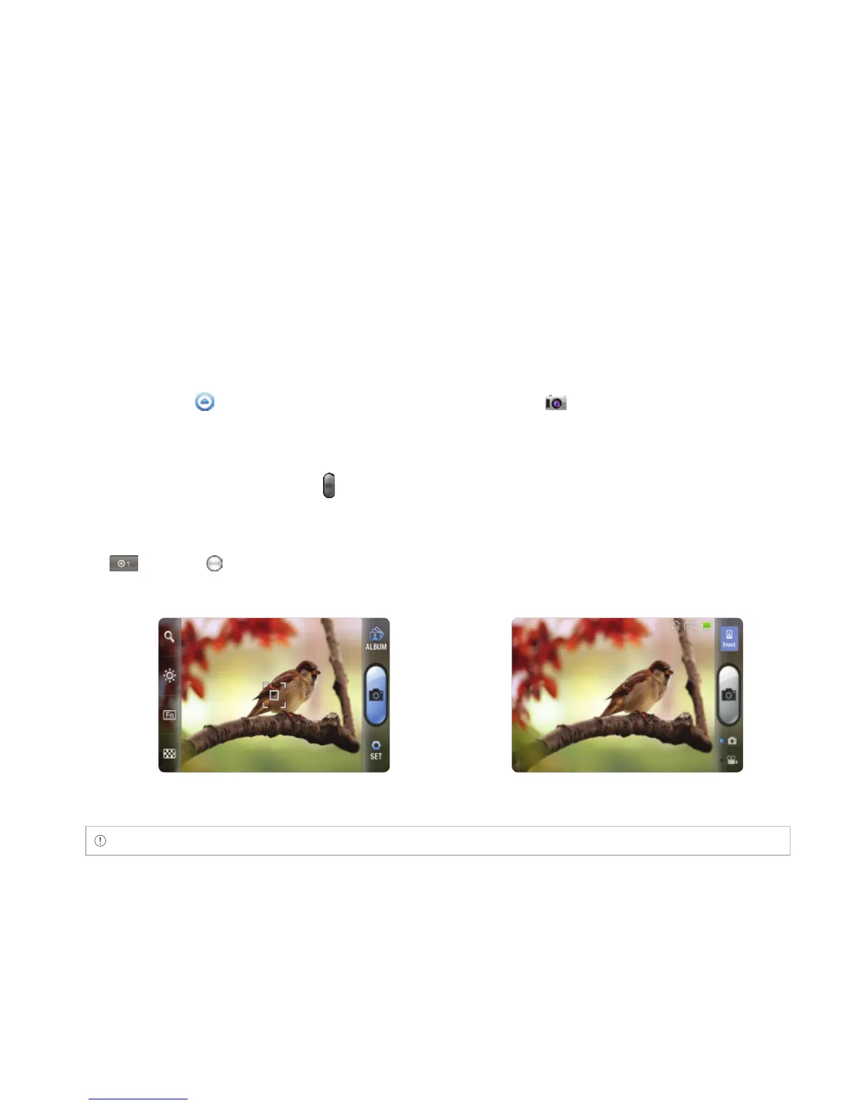 3 Focus on the object and touch or press the Camera/Video Key G. The picture is saved