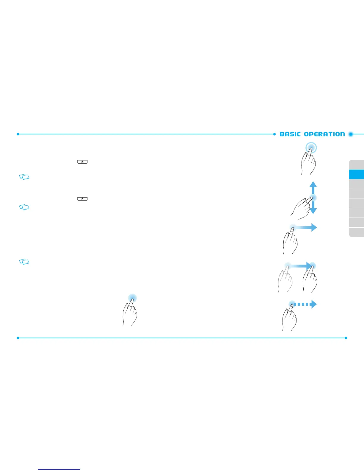 following finger actions help you easily understand how to use the touch screen.
