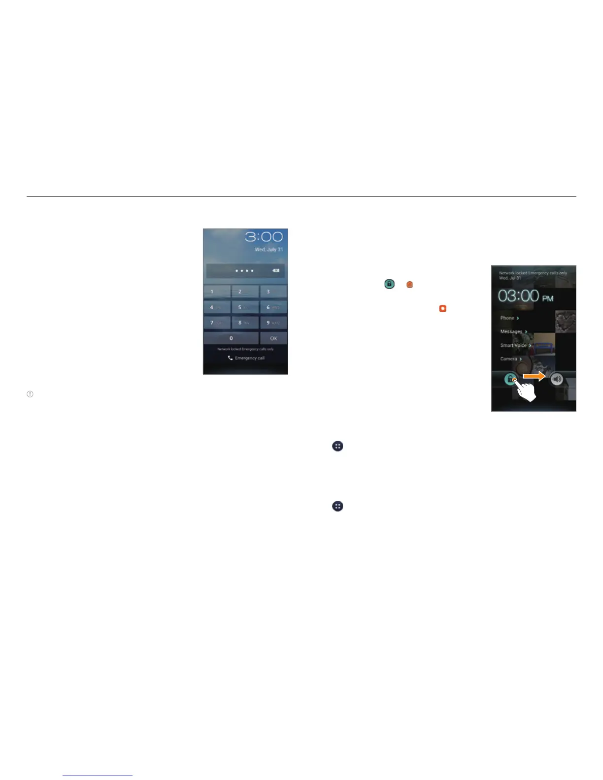 Tap > Settings > User theme > Screen lock > Shortcuts. You